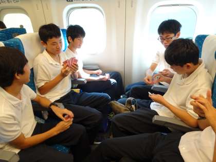 新幹線は静岡県に入りました。生徒たちはトランプやUNOをしたり、みんなで話をしたりして楽しく過ごしています。(遠藤)