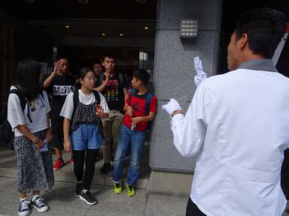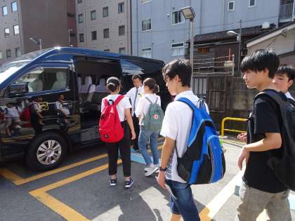 タクシーでの班行動が始まります。運転者さんにあいさつをしてタクシーに乗って出発です。(遠藤)