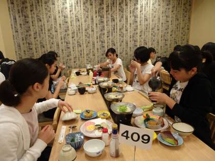 2日目の夕食です。たくさん食べて疲れた体を癒しましょう。(遠藤)