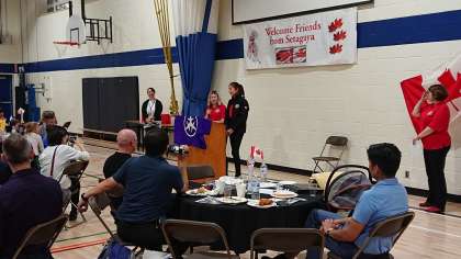 歓迎夕食会です。すぐにホストファミリーとは打ち解けられました。先住民をルーツにもつカナディアンが歓迎のダンスを披露してくれました。多様な文化を初日から体験しました。(桝田)