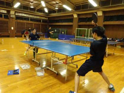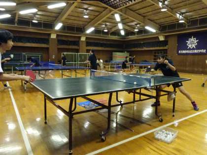 格技室では卓球部が活動中です。ドラブロの練習をしています。(遠藤)