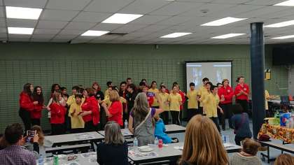 最後の夜はお別れ夕食会です。ホストファミリーとウィニペグの先生方が一同に会して、寂しさを感じながらも楽しいひとときを過ごしました。私たちのパフォーマンスでは、ウィニペグの生徒と先生方が一緒になって歌いました。夕食会の終わりには、心のこもったプレゼントまでいただきました。このように温かく迎えていただき、感謝の言葉しかありません。ありがとう、ウィニペグの皆さん!(桝田)
