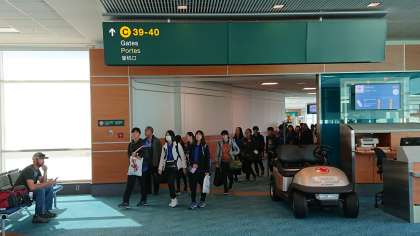 西部時間12:10に経由地のバンクーバー空港に到着しました。生徒はみんな元気です。13:50発の成田行きに乗り、いよいよ日本に向かいます。(桝田)