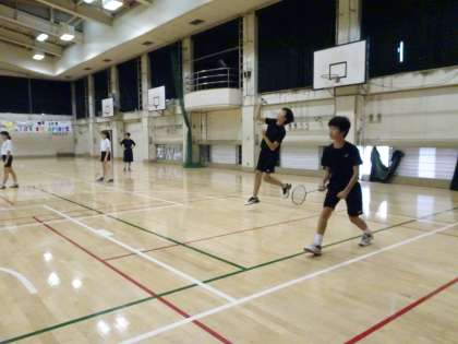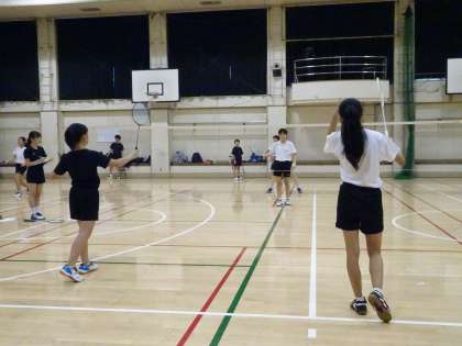 バドミントン部が体育館で練習しています。明日の試合に向けて試合形式の練習をしています。明日はがんばってください。(遠藤)