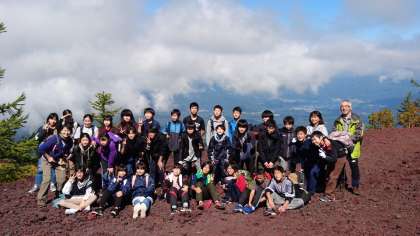 河口湖バックに記念写真です?