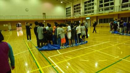 クラス全員がブルーシートに乗ったまま、ブルーシートをひっくり返すのです。