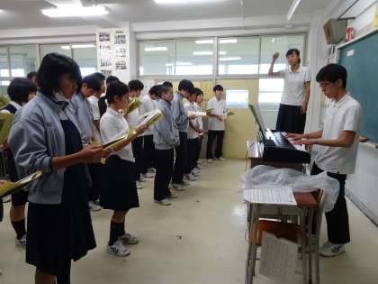 6時間目は合唱練習です。3年D組は前半は教室で、後半は体育館での練習です。合唱コンクールまであと2週間、みんなで協力してよい合唱に仕上げていきましょう。(遠藤)