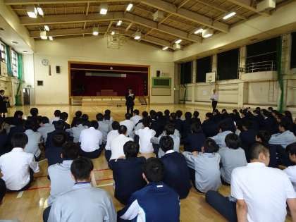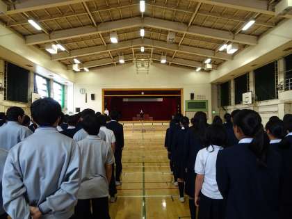 3年生の学年練習です。合唱コンクール実行委員を中心に進められています。学年合唱の様子です。(遠藤)