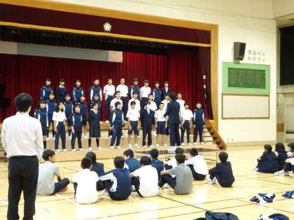 B組のチーム練習です。朝ですが2年生はよく声がでています。3年生の実行委委員のアドバイスをしっかり聞きましょう。(遠藤)