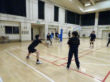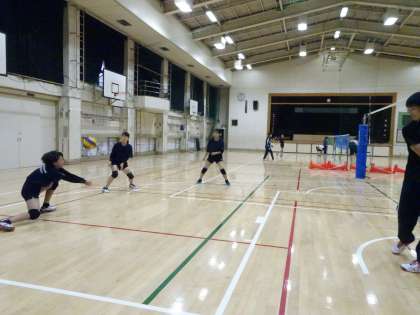 バレーボール部が体育館で活動しています。男女合同でスリーメンをやっていました。(遠藤)