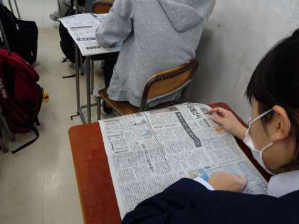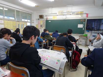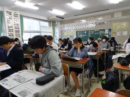 土曜授業の朝はNIEです。今日は東京新聞を読んでいます。(遠藤)