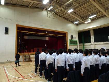合唱コンクールの全校リハーサルを行いました。開閉会式の流れの確認と学年合唱の練習を行いました。(遠藤)