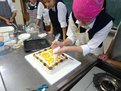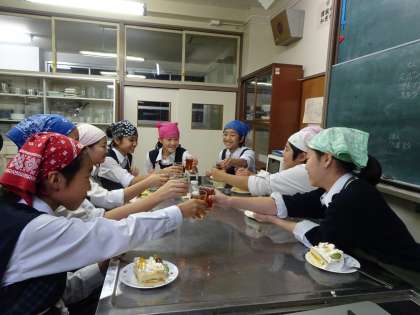 家庭科部がケーキを作っていました。とても美味しそうにできあがりました。今日の活動をもって3年生が引退になるので、紅茶で乾杯していました。(遠藤)