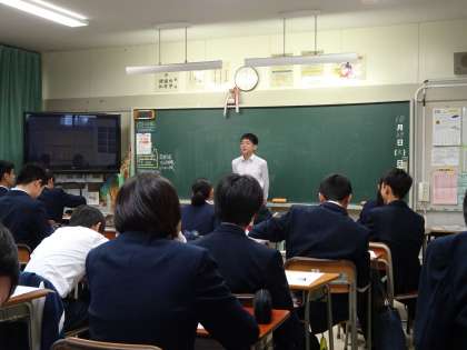 2年B組の国語の授業です。スピーチの発表をしていました。(遠藤)