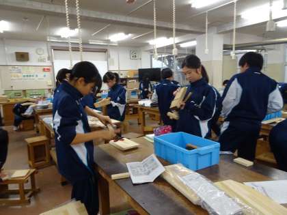 1年A組の技術の授業です。木材加工をしています。かんなの調整が難しそうですね。(遠藤)