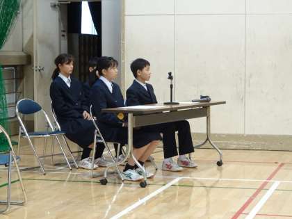 放課後、明日の生徒総会のリハーサルを体育館で行っています。生徒会も2年生が中心となっての活動になります。きちんと明日の流れをおさえておきましょう。(遠藤)