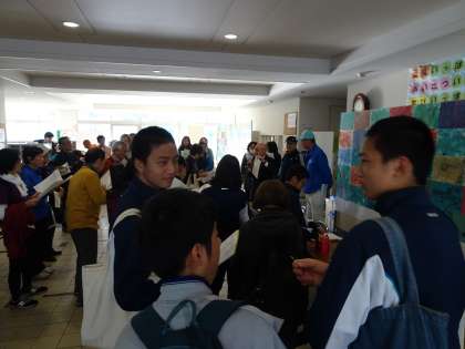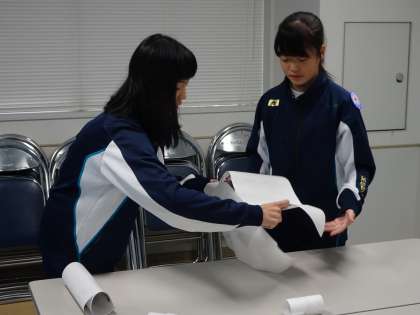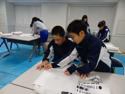 JRC部がこまフェスタに参加しています。まずは案内のポスター作りのお手伝いです。(遠藤)