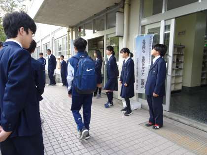 駒の学び舎あいさつ運動最終日です。あいさつ運動は終了しますが、これからも毎日、元気なあいさつが飛び交う駒沢中にしていきましょう。(遠藤)