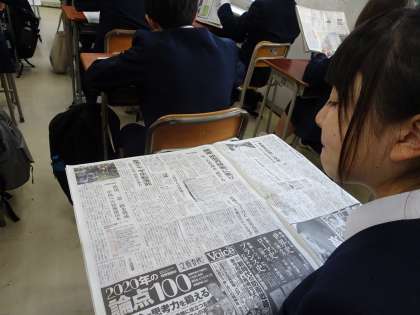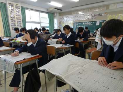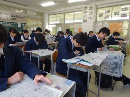 土曜授業の朝はNIEタイムです。今日は産経新聞です。スポーツ面や社会面などの気になった記事を読んでいます。(遠藤)