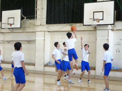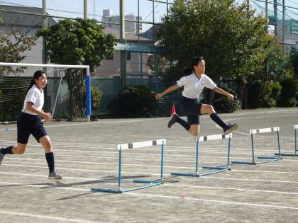 3年CD組の体育の授業の様子です。男子は体育館でバスケットボールをしています。女子は校庭でハードルをやっていました。(遠藤)