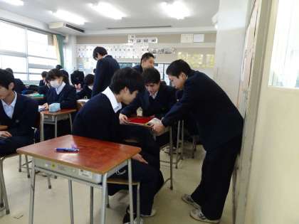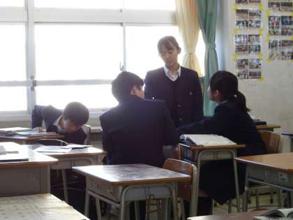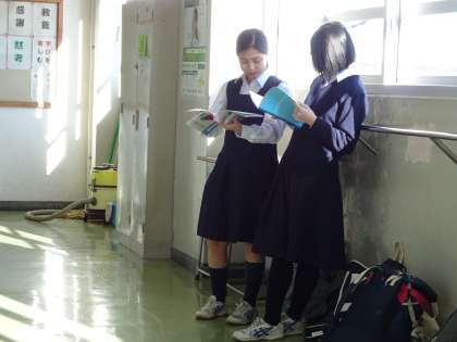 朝の教室や廊下の様子です。今日の期末考査に向けて試験範囲の最終確認をしていました。(遠藤)