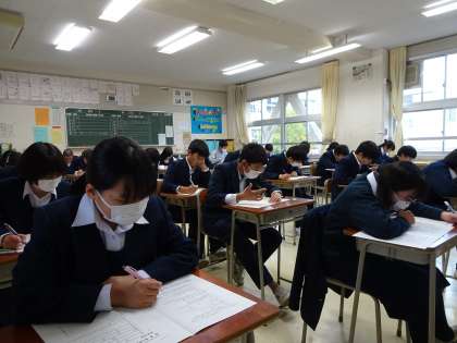 期末考査最終日です。今日は理科、社会、音楽の試験が行われます。最後まであきらめず、何度も見直しをしましょう。(遠藤)