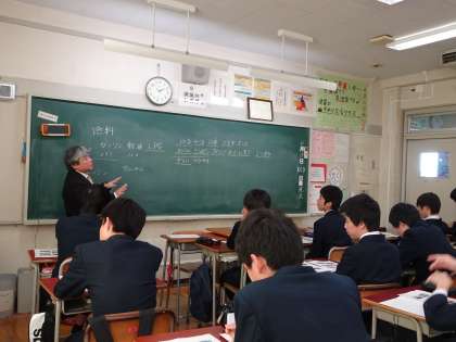総合工科高校の授業は「工業」です。自動車について学習しています。日本大学櫻ヶ丘高校の授業は「英語」です。文型について学習しています。国士舘高校の授業は「古典」です。古文のもとになっているマザーボードについて学習しています。(遠藤)