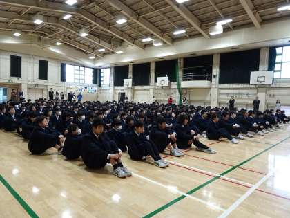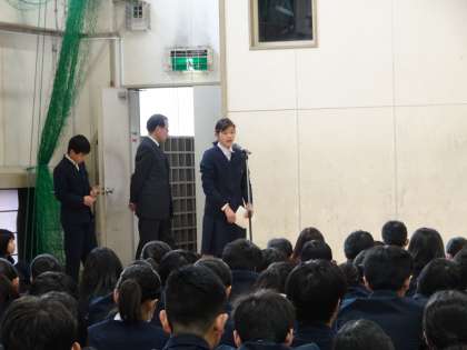 本日、生徒会朝礼を行いました。生徒会本部や各専門委員会から2学期の反省や生徒へのお願いが伝えられました。(遠藤)