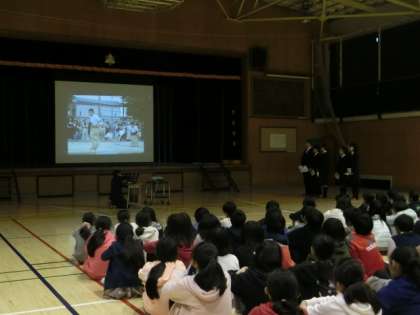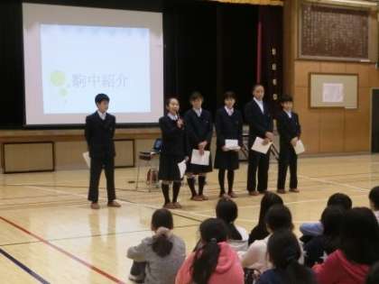 生徒会本部役員が駒沢中学校を紹介するため、三軒茶屋小学校を訪問しました。小学校と中学校の違いなどを分かりやすく小学生に説明することができました。(松本)