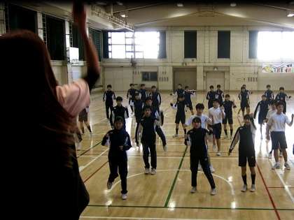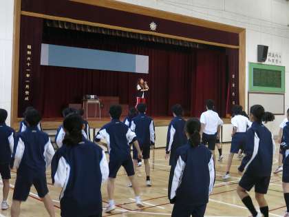 2年生体育の授業では「おーいせたがや」という曲に合わせて「広がれ世田谷ダンス」を踊りました。エイベックスの講師の先生に1時間振りを教えてもらいとても盛り上がっていました。(多久)