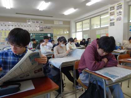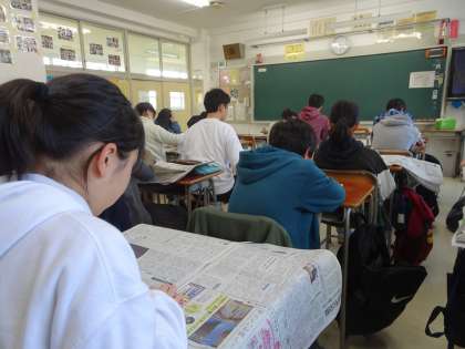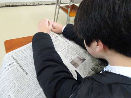 土曜授業の朝はNIEタイムです。今回は朝日新聞を読んでいます。イギリスのEU離脱の記事が気になっているようです。(遠藤)