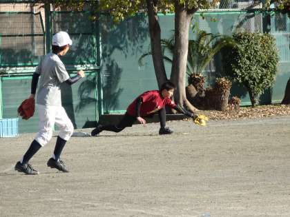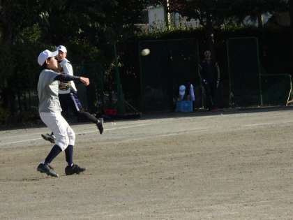 野球部が校庭で活動しています。ダブルプレーの練習をしています。相手の胸にきちんと送球しましょう。(遠藤)