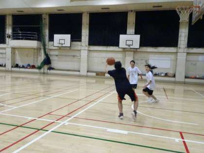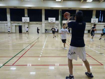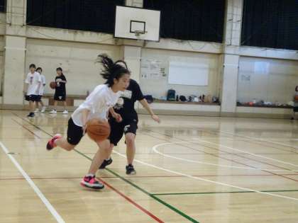 体育館では女子バスケットボール部が活動しています。1対1やスクエアパスをやっていました。スピードに緩急をつけてディフェンスを抜きましょう。(遠藤)