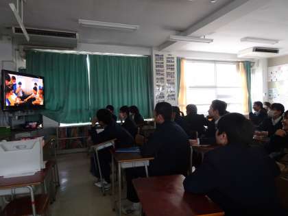 終業式のあとは学活です。担任の先生から通知表を受け取ります。3年D組はスライドショーを見て、クラスみんなで2学期をふり返っていました。(遠藤)