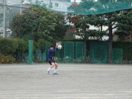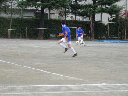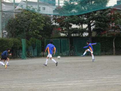 校庭ではサッカー部が活動しています。パスをつないでシュートを打つ練習をしています。(遠藤)
