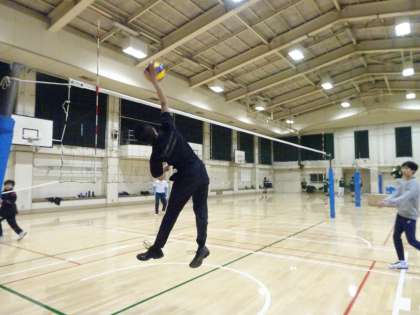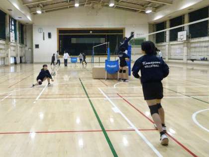 午後の体育館では男女バレーボール部が活動しています。女子はレシーブの練習をしています。男子はスパイクの練習をしていました。(遠藤)