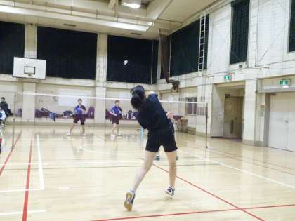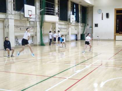 バドミントン部が玉川聖学院中と練習試合をしています。練習していることを試合の中で試していきましょう。(遠藤)