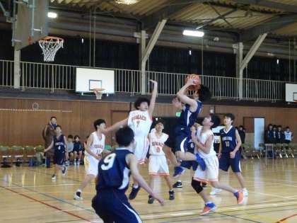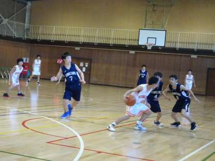 男子バスケットボール部が狛江三中と喜多見中と練習試合をしています。練習しているダブルチームでのディフェンスを試合の中で試していきましょう。(遠藤)