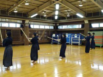 格技室では剣道部が活動しています。素振りをしています。しっかり声を出して行いましょう。(遠藤)