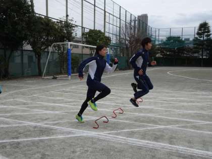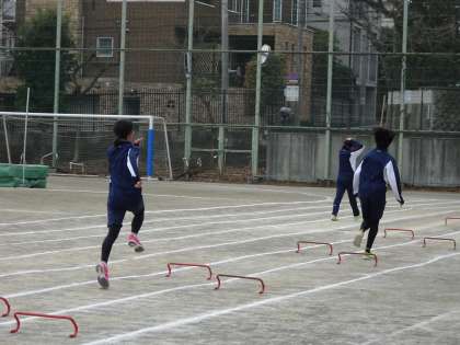 校庭では陸上競技部が活動中です。ミニハードルを使って練習しています。リズムよく体を動かしましょう。(遠藤)