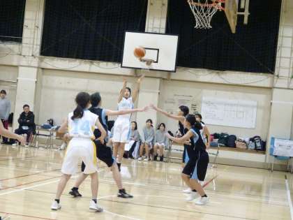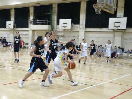 女子バスケットボール部が弦巻中と練習試合を行っています。スクリーンプレーやコートを広く使ってオフェンスをしましょう。(遠藤)
