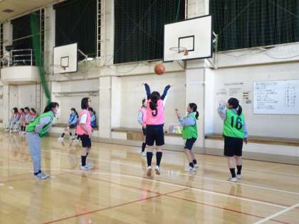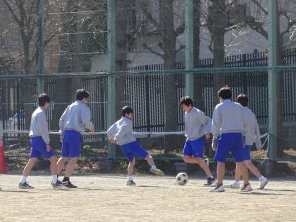 3年CD組の体育の授業です。男子は校庭でサッカーをしています。女子は体育館でバスケットボールをしていました。(遠藤)