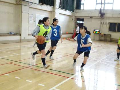 3年CD組の体育の授業の様子です。女子は体育館でバスケットボールをしていました。男子は校庭でサッカーをしています。(遠藤)