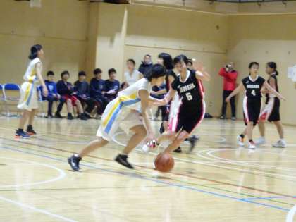 女子バスケットボール部の冬季大会が行われました。1回戦の相手は奥沢中です。第1ピリオドはリードされ、第2、3ピリオドで逆転、互いに譲らす延長戦までもつれ込む接戦でしたが、惜しくも51対53で敗れてしまいました。春季大会に向けて、また明日からがんばっていきます。(遠藤)