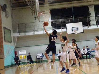 男子バスケットボール部の冬季大会1回戦が行われました。対戦校は桜木中です。ディフェンスをがんばり、自分たちのリズムで試合を進め、23対87で勝利しました。2回戦に向けてがんばっていきます。(遠藤)