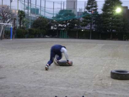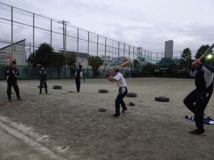 校庭では野球部が活動しています。素振りをしたり、タイヤを使ってトレーニングしたりしています。(遠藤)