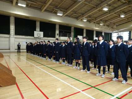 本日、全校朝礼を行いました。校長先生から進級、進学に向けての講話がありました。(遠藤)