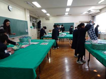 放課後、若竹祭(展示発表)の準備を行っています。係生徒が技術家庭や美術、英語の授業で作成した作品や、宿泊行事での体験学習の作品、総合的な学習の時間に作った新聞などの展示をしています。(遠藤)