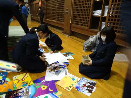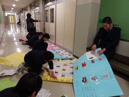 若竹祭(展示発表)が終了しました。放課後、生徒たちが展示物の片づけをしています。(遠藤)