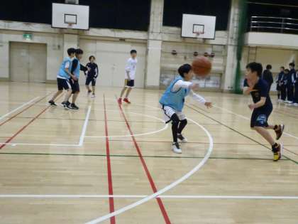 男子バスケットボール部が体育館で活動しています。明日の冬季大会に向けて、ディフェンスやオフェンスの確認をしています。(遠藤)